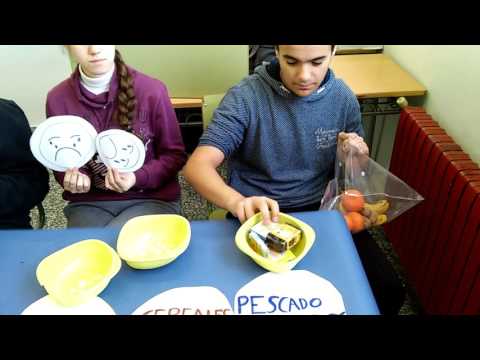 Comentarios: 0Tres alumn@s en clase, exponen su punto de vista, mediante el porcentaje de un tercio, en platos con frutas de plástico y reales. Tiran las reales para que se vea el efecto de tirar comida sin necesidad.